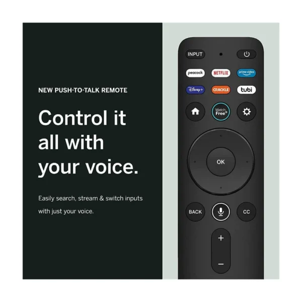 • With an all-new push-to-talk voice remote, VIZIO Voice enables you to say simple, intricate, or follow-up commands on SmartCastTM.